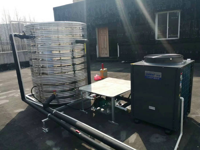 杭州康復醫院熱水系統采用了5P智恩空氣能熱泵熱水機+不銹鋼保溫水箱。主要設備有:1臺5匹智恩空氣能熱水機(ZN-KFDX-050Ⅱ)+2噸不銹鋼保溫水箱(內膽304不銹鋼,外膽201不銹鋼,保溫厚度50MM)