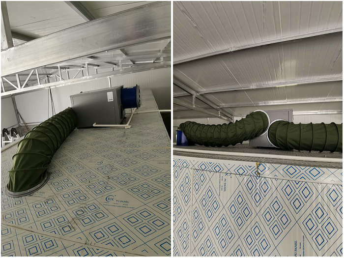 陜西咸陽武功縣金銀花烘干系統(金銀花烘干機+金銀花烘干房):一體式熱泵烘干機組:15匹,烘干房:2.2*9.6*2.3。